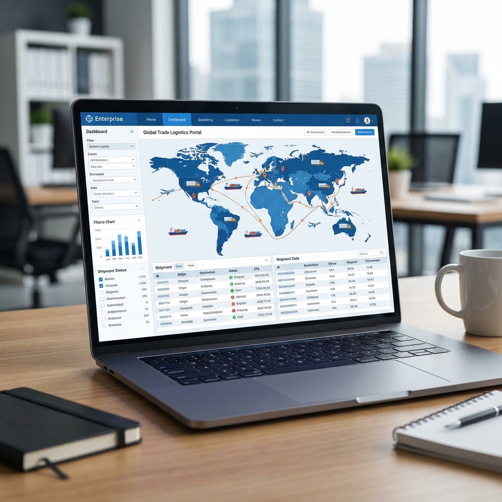 Global enterprise trade portal for real-time import/export tracking and logistics.
